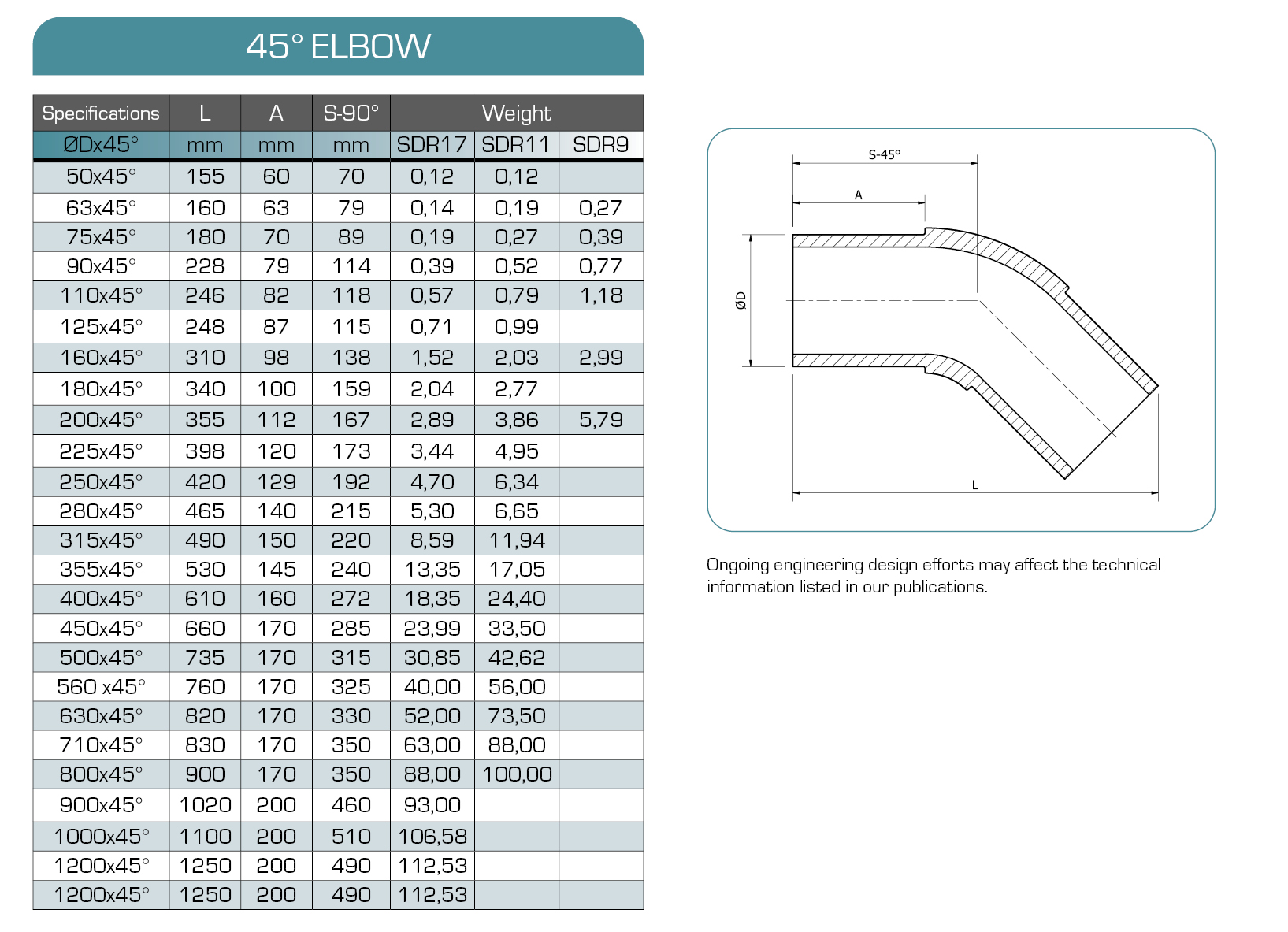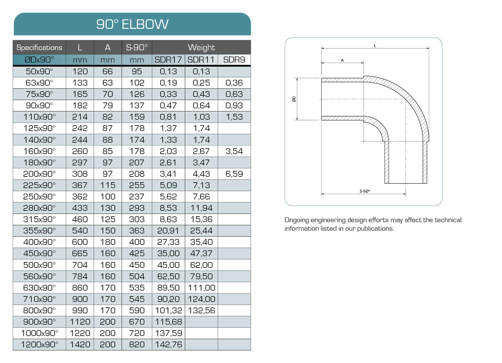 - Outside diameter, SDR and angle of the pipe for which the fitting is intended