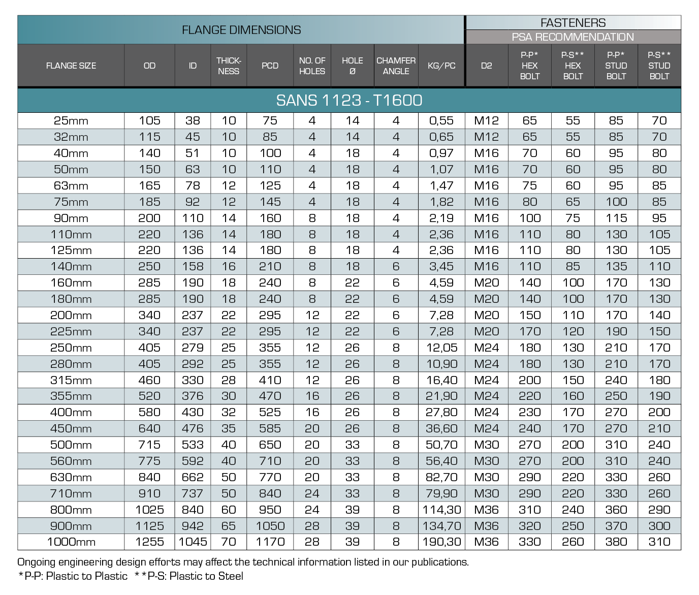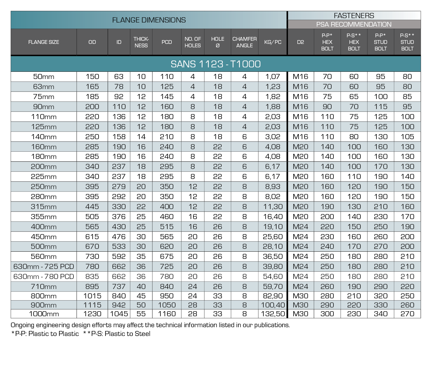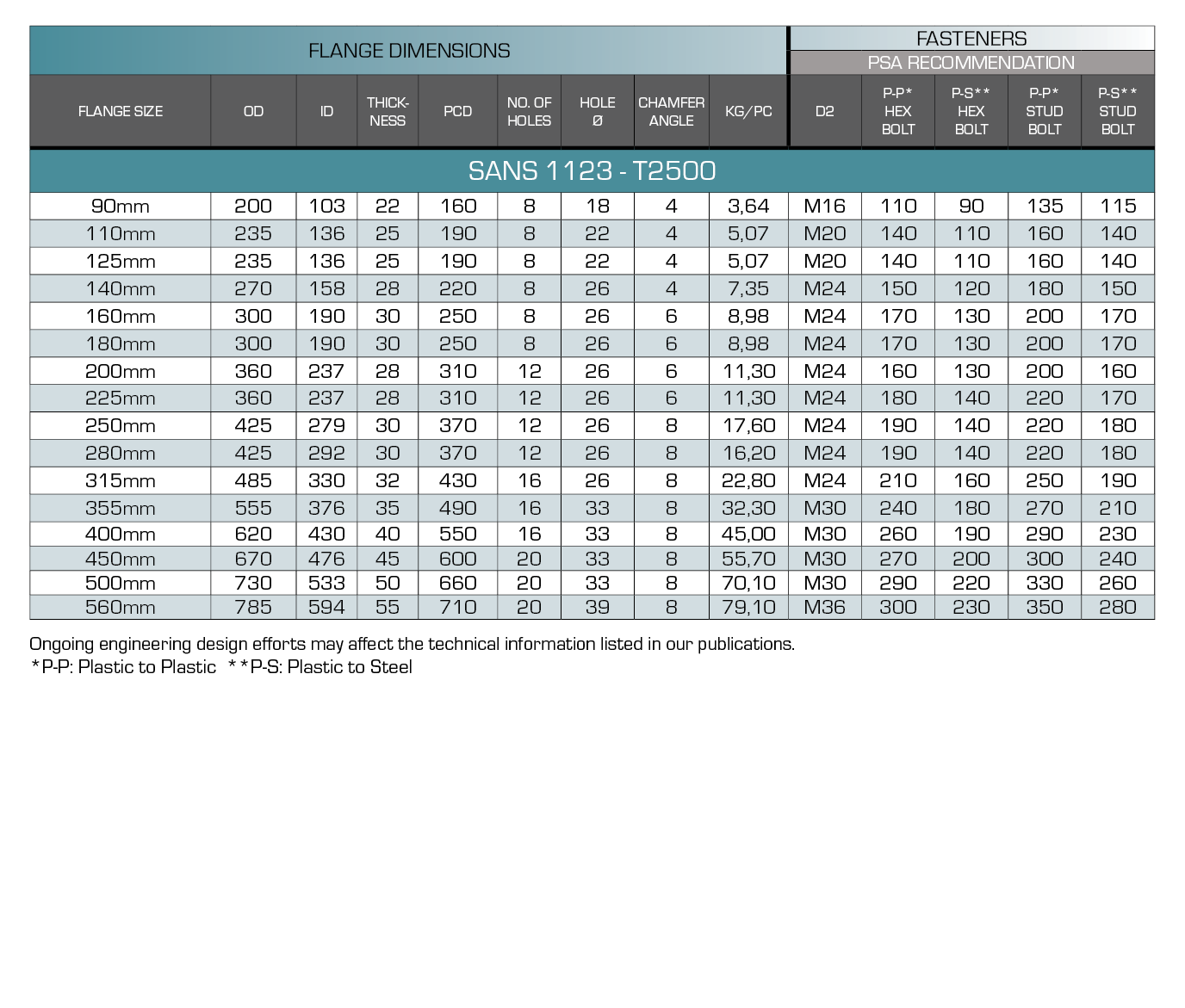 - Meets Pipestar Africa published dimensional schedule. Dimensional tolerance ± 20mm