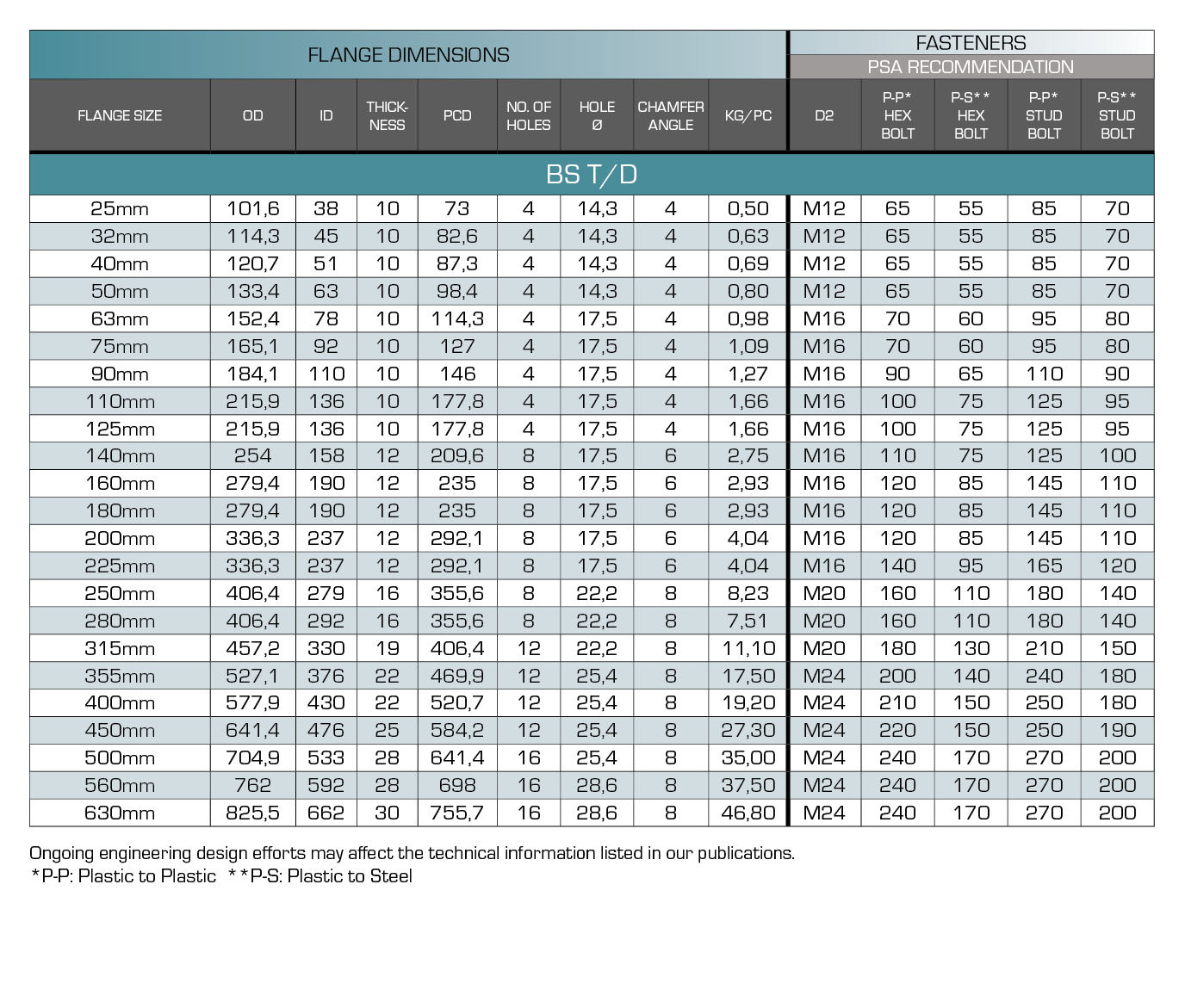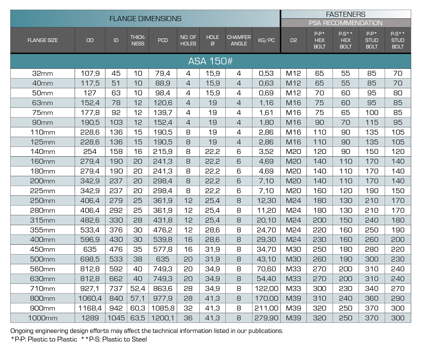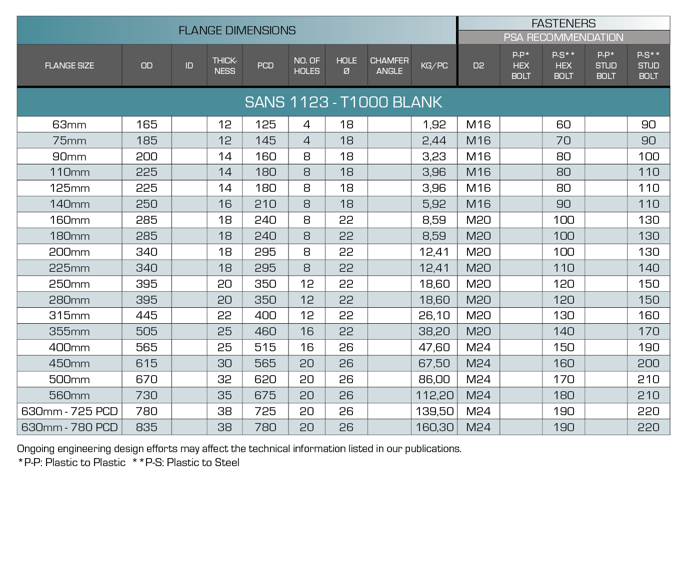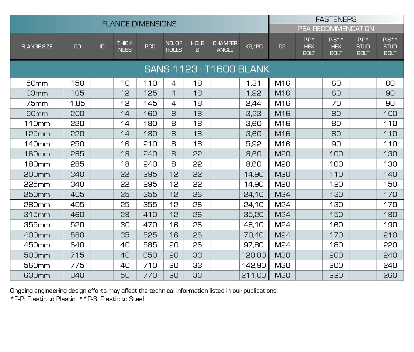 - Meets Pipestar Africa published dimensional schedule. Dimensional tolerance ± 20mm